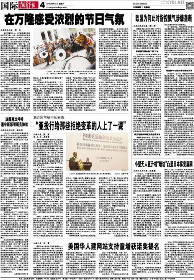 安南特别强调:“亚投行的出现给那些拒绝改革的人上了一课,同时也向世界发出信号——中国已准备好在国际舞台上扮演更重要的角色。”