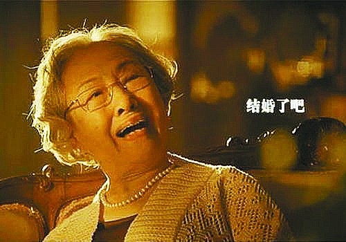 2014年春节,某婚恋网站的视频引起震动:一个年轻姑娘每次面对年迈的外婆时,外婆总在重复着一句话:“结婚了吧?”几次问询后,姑娘开始痛下决心“我不能再慢慢挑了”,选择求助这个婚恋网站。最后一幕中,外婆插着鼻管躺在病床上,姑娘则身披白纱,和一位男士走到外婆的病床前说:“外婆,我结婚啦!”