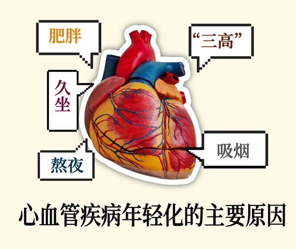 近年来,心血管疾病呈现出明显的年轻化趋势,“这一现象在30-40岁的中年男性中尤为显著,甚至不乏20多岁的年轻患者”。杨柳解释,代谢综合征,包括肥胖、“三高”、久坐的生活习惯、吸烟、工作压力大以及熬夜等,都被认为是心血管疾病年轻化的主要原因。特别是对于那些工作压力大的年轻人,熬夜几乎成了家常便饭。这无疑加剧了心血管疾病的发病风险。