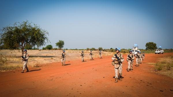 由于南苏丹国家局势动荡,今年4月,中国维和步兵营结合联南苏团战备能力评估,以任务区发生武装冲突为背景,展开紧急避险、营区防卫、伤员后送、控制流民涌入、建立临时行动基地(TOB)等授权任务实兵演练,联南苏团同步采取听取汇报、文件核查、桌面推演、现地检查等方式,对维和步兵营的指挥筹划能力、应战备战水平、突发情况处置、武器装备性能、授权任务执行等能力指标进行全面客观的分析评估。