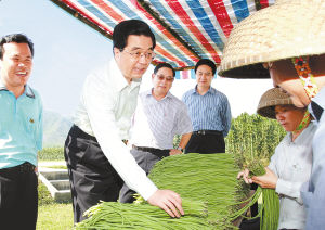 海南热带农业资源丰富,是全国重要的热带高效农业生产基地。考察途中,胡锦涛多次走进田间地头和少数民族村落,仔细了解农民群众生产生活的情况。
