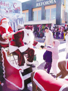 跨过边境线,也就进入了墨西哥。由于我到的时候正是圣诞节的前一天,华雷斯的街道上非常热闹,神圣的天主教堂正在进行着本年最后的一次礼拜,青年人用舞蹈的形式表达他们对主耶稣的情感,小孩子们在广场与圣诞老人一同游戏。