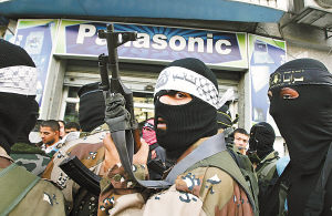 4月9日,不同派别的巴勒斯坦武装人员在加沙城举行新闻发布会,宣称对当天发生的越境袭击以色列边境关卡事件负责。巴勒斯坦伊斯兰圣战组织(杰哈德)和人民抵抗组织等组织称,他们的武装人员对以色列向加沙地带输送燃油的关卡纳哈勒奥兹实施越境突袭,打死2名以色列人。纳赛尔摄(新华社发)