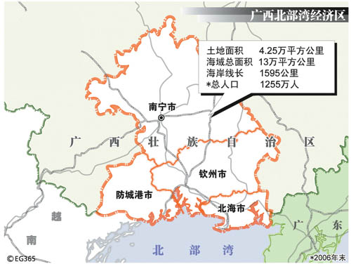 国家批复的《广西北部湾经济区发展规划》中说,国家高度重视广西沿海地区的发展,明确将北部湾经济区作为西部大开发和面向东盟开放合作的重点地区,新要求、新使命,使条件具备、时机成熟的北部湾迎来全新的发展机遇。