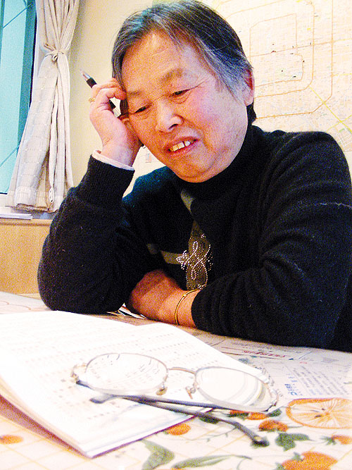她眼睛花了,戴一会儿老花镜就觉得眼睛酸痛。她只上过三年女子完小(相当于初中文化水平),又不大会查字典,往往要一页一页地去翻。她的记性大不如前,经常要绞尽脑汁,才能想起人名和日期。