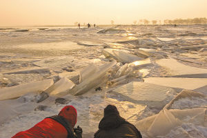 2月11日,流经吉林省舒兰市白旗镇沈屯村附近的松花江开江。巨大的冰排在夕阳映照下形成了美丽壮观的景象,激发了许多摄影爱好者的创作热情。 朱万昌摄