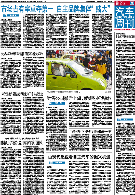 长城2009年轿车销售目标拟增长800%