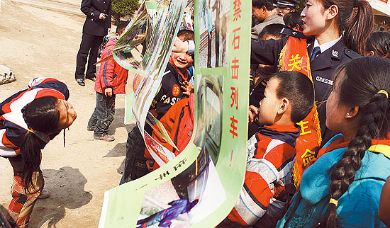 合武铁路安全宣传小分队的干警们把安全知识送到沿线村里。