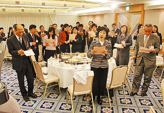 2009年2月6日,参与本报征文大赛的一等奖获得者及访日团全体成员,在日本伊丹市与日本朋友同声高唱《北国之春》。孙立成摄