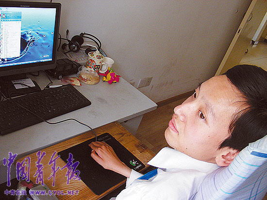 这些只能是心愿罢了。作为一个肌肉萎缩病患者,他脖子以下的身体几乎无法动弹,不能自己穿衣服,端不起一杯水,甚至赶不走停在身上的苍蝇。即便是唯一能够活动的右手中指,也只有够轻轻触摸鼠标的力气,连挠痒痒都不行。