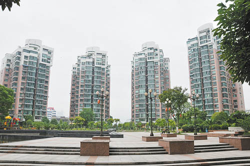 这是温州市环境优美的顶级楼盘“得月花园”一角(6月9日摄)。