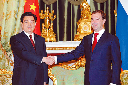 梅德韦杰夫表示俄方高度重视发展对华关系,他就发展两国关系提出建议。第一,深化政治合作,加强两国民众对发展两国关系的支持,增进相互感情,坚持两国睦邻友好。第二,扩大经贸合作,加强能源、机电、科技、农业、电信、金融、军技等领域合作,带动双边贸易发展。第三,重点发展两国地方和边境地区合作,为边境地区居民创造良好工作生活环境。第四,在国际舞台上加强沟通和配合,加强在上海合作组织、“金砖四国”、二十国集团、八国集团同发展中国家领导人对话会议等场合的合作。第五,在重大国际和地区问题上加强合作,探索合作新模式,共同应对国际金融危机冲击。双方人文合作发展良好,当前尤其要共同办好“语言年”。