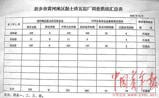 去年以来,河南省、有关省辖市政府一直在整顿治理黄河滩区的砖瓦窑厂,与之相关的文件不断传达到原阳县。原阳县也专门成立了两个治理砖瓦窑厂的机构:一个是设在国土资源局的原阳县治理整顿砖瓦窑厂领导小组办公室,另一个是设在建设局的原阳县黄河滩区整顿规范领导小组办公室。
