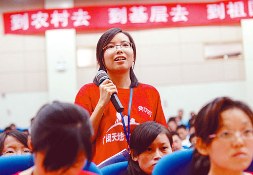 7月28日,湖北省2009年选聘到村任职高校毕业生培训班在武汉湖北大学开课。今年湖北省共有12788名高校毕业生报名应聘大学生村官,最终获聘865人。胡伟鸣摄