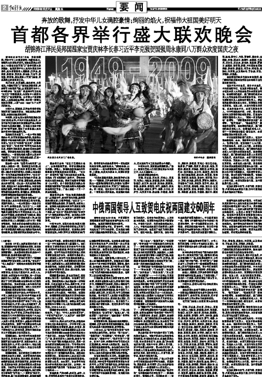 中俄两国领导人互致贺电庆祝两国建交60周年