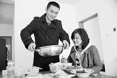 殷亮和刘艳租住在合肥的一间套房。一年时间里他们换了几次房子,两人觉得很累,但小日子仍然过得其乐融融。