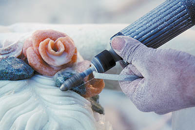 羊平村的一家工厂,地上满是石沫和水混合成的泥浆,几个穿着雨鞋的女工正在冲刷已成型的石雕。21岁的小雪在比照着模型雕刻一件约80公分高的“维纳斯”雕像。小雪并不清楚雕塑的名称,她指着旁边的“圣母抱婴像”说,“雕那种‘抱小孩的’用的时间长,雕这个‘缺胳膊的’快。”这些将摆放在城里的“艺术品”,在这些工人眼里,只是一件件的“活儿”。他们只要照着模型做,并按时交工,就可以拿到计件工资。雕刻厂一般只接受订货,客户提供模型或者照片,雕刻工人只需要模仿,基本用不到创意或者设计。