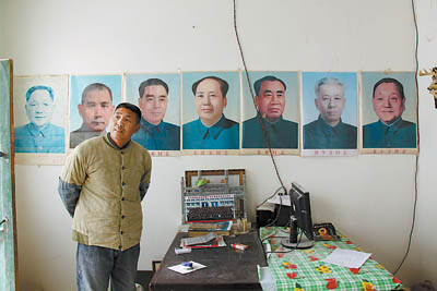 石刻厂厂长卢少凯的办公室,墙上贴满了领袖画像。这家工厂每月都能卖出两个大型的毛主席像。