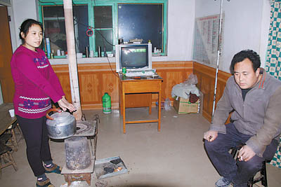 晚上收工后,赵士晖(右)回到家里。他们的儿女都被送进了寄宿学校。