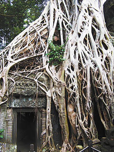 在正午强烈的阳光下,坐在塔布茏寺有千年历史的石阶上,看榕树在石缝间伟岸挺拔,感受到的则是另一种伟大,惊叹于再辉煌的文明终究敌不过自然的力量。历史终究把一切交还给大自然,当精美的石雕和盘根错节的榕树融为一体,文明与自然达成了一种不分彼此的和谐,文明篆刻于自然之上,自然凝结于文明之中。
