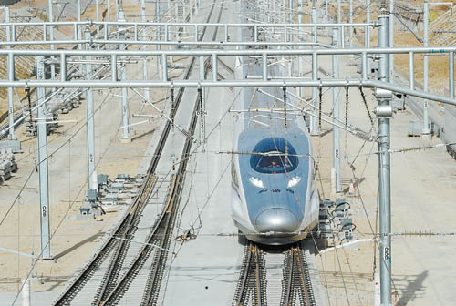 12月3日,跑出486.1公里时速的“和谐号”CRH380A驶入京沪高铁蚌埠南站。