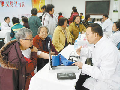 12月4日,医疗专家在大连沙河口区星海湾街道为群众义诊。当日起,由大连市各医院主任医师、科室主任等组成的百名专家志愿者队伍走进大连社区,面向社区居民开展为期一周的义诊活动。