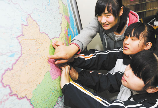 12月2日,西安盲哑学校的视障学生在陕西省图书馆视障阅览室触摸“祖国”。当日,陕西省图书馆特别安排西安盲哑学校的16名视障学生参观专为残疾人服务的视障阅览室。孩子们在大学生志愿者的帮助下参与触摸盲文书、上网听音乐等活动,体验“阅读”的快乐。袁景智摄