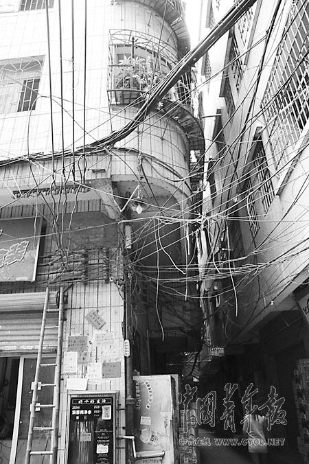 进入棠下村,人们立刻会产生逼仄的感觉。一米多宽的街道和两侧五六层高的楼房,让天空显得越发局促。杂乱的电线在人们头顶穿过,像一张网。破旧的街道两旁布满了饭馆、杂货店、理发馆、网吧和台球厅,原本就不宽的道路因被小商贩占道经营而显得更加狭窄。