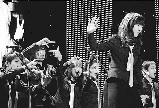 “北外合唱团”作为表演嘉宾在第二十三届北京外国语学院十大歌星赛上表演无伴奏组曲。“校园歌星赛”是北京各大高校学生团体广泛开展的文艺活动形式,以其极高的参与度和丰富多样的形式受到大学生们的广泛喜爱,给在校大学生提供了一个展示自我,表现个性的舞台。实习生 杨雪帆摄