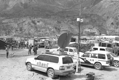 紧急调派至舟曲的卫星应急通信车保障救援队伍顺利开展救援工作。