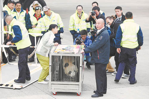 12月18日,中央政府赠送澳门特别行政区的两只大熊猫“开开”、“心心”乘专机抵达澳门国际机场,随后被送往澳门路环石排湾郊野公园大熊猫馆。