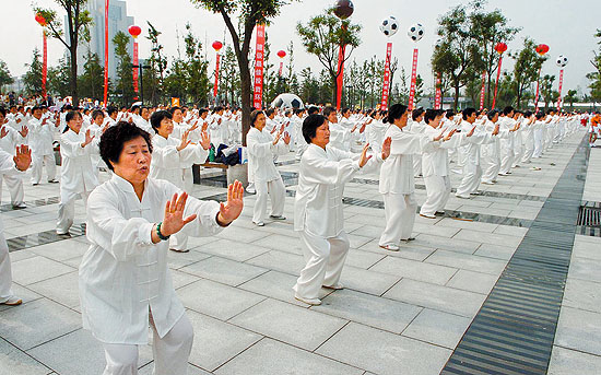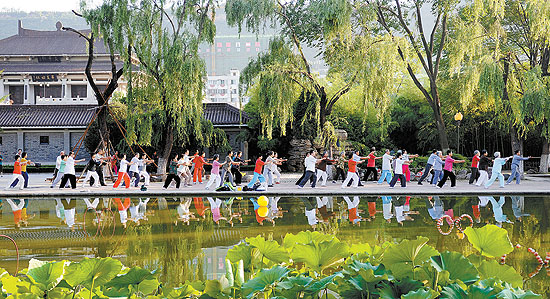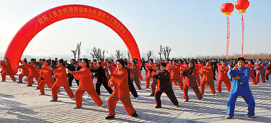 ▲在西安唐城墙遗址公园进行的全民健身展示活动