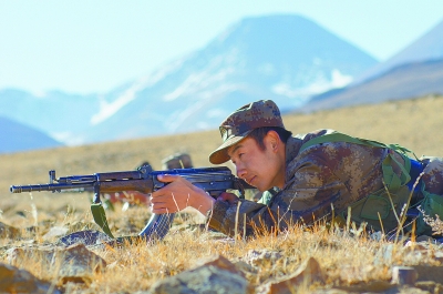 海拔4100米,元月17日午后,日当高原静悄悄。5名射手据枪猫行,改版后的应用射击比武弹已入膛。