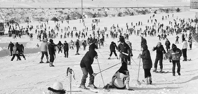 1月15日,沈阳棋盘山滑雪场,勇敢的人们嬉雪滑冰,很多外地游客慕名前来观光游览。