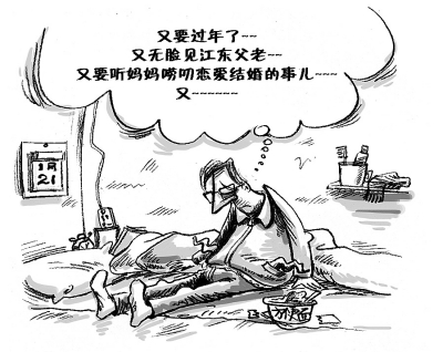 春节将至,一些年轻人却不愿或不敢回老家,囊中羞涩是一个重要原因。(《华商报》1月20日)漫画:徐简
