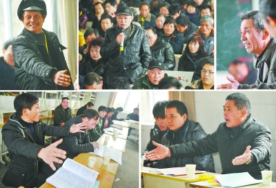 1月23日,泽国镇各村的民意代表就镇政府的预算展开激烈的讨论(拼版照片)。