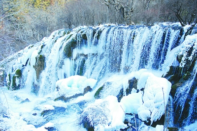 冬季到九寨沟,另一个必游项目是看“冰瀑”。九寨沟的冬天除了长海、熊猫海等几个海子外,其他海子都不结冰,但激流的瀑布在最寒冷的时节定格成一座座天然冰雕。诺日朗瀑布收起它那气势磅礴的阳刚之气,珍珠滩瀑布和树正瀑布也把往日的欢腾凝固在冰雪之中,凝结成许多巨大的冰柱,晶莹的冰帘以及千姿百态的冰幔冰挂,好似一派璀璨耀眼的冰晶世界。九寨沟国际冰瀑旅游节每年都会在珍珠滩瀑布举行盛大的典礼,给仙境般的山林海子带来一点人间喧闹。
