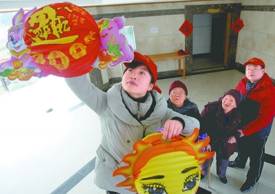 2月15日,安徽淮北供电公司的志愿者走进市福利院,与孤寡老人一起包元宵、挂彩灯,喜迎即将到来的元宵佳节。