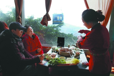 2月11日农历正月初九,位于重庆市渝中区沧白路63号嘉陵江索道站台楼二层的一家火锅店里,老板张建平和服务员正忙着招呼客人。靠窗的座位上人们围坐在热气腾腾的火锅旁,窗外一辆索道车厢缓缓滑过。张建平说:“一边吃火锅,一边看索道,这是重庆独有的风景。可惜这样惬意的日子不多了。”这片区域不久就要拆迁了,他们将在两个月后搬离这里。
