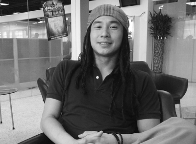 郑中骏的眼睛一双一单,留着一头过肩的黑人卷儿,扎着时尚的花头巾。他用不太熟练的普通话,断断续续地自我介绍道:“我叫骏,我是个厨师。”