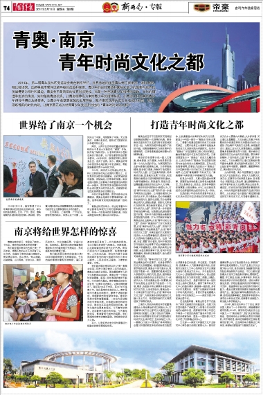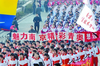 2005年,南京成功举办了十运会,南京向国人展示了一个开明开放、博爱博雅的城市形象。2014年,南京将成为继北京之后中国又一个“奥运城市”,我们完全有理由相信,届时南京也必将带给世界非凡的精彩,所不同的是,演绎这场精彩的主角却是南京的青少年,正如南京申办青奥会口号所言,希望他们都能够“与青奥共成长”。