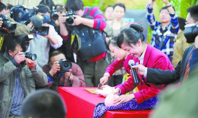 3月17日,两名大学生保姆在拍卖现场展示才艺。