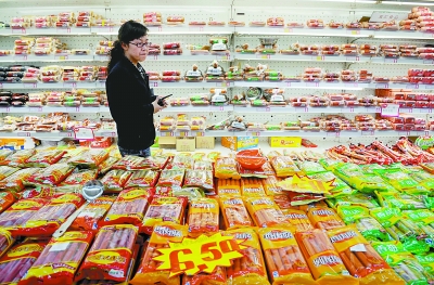 河南省济源市一家超市(3月18日摄)。“瘦肉精”事件曝光后,河南各大超市双汇产品全部下架,其它制品仍在供应。