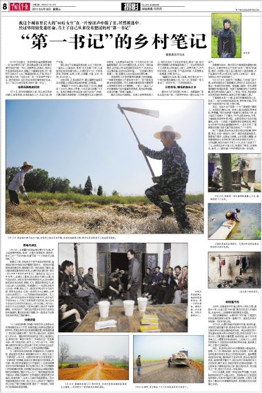 2011年元旦刚过,我所供职的省报需要选派一名“驻点帮扶干部”,到安徽省望江县华阳镇计渡村担任村第一书记,任期两年。在单位,我的工作是接待来信来访,接触了大量基层信息,但一直苦于没有沉下心去了解基层的机会。于是,我这个城市里长大的“80后女生”在一片惊讶声中报了名,居然被选中,经过所在地华阳镇党委的任命,当上了自己从来没有想过的村“第一书记”。