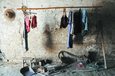 5月13日,王家霸片的胡金海与妻子打枷,手工给油菜籽脱粒。他说:“计屋片有脱粒机,很快的,我手工打一天的枷,机器不到一个小时就可以脱完粒了。”