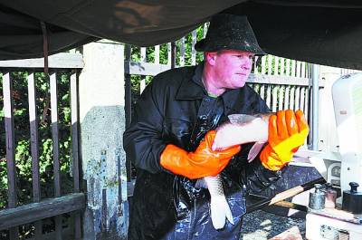 湖边摆着很多小摊售卖各种小食,烤鱼、炸薯片让人垂涎。大人们的聊天声、孩子们的欢笑声、摊主们的吆喝声在小镇上空回荡着。湖里,有几个工人正在清淤。清淤之前,他们把湖里的鱼都打捞上来,卖给居民和游客。真想不到,小湖里的鱼那么大,被捕捞上来的活蹦乱跳的鱼,在几分钟内被居民抢购一空。特尔茨这座曾经位于交通要道、十分繁荣的小镇,如今太需要这样的热闹了。