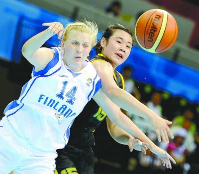 8月15日,中国队在大运会女篮比赛中,以40∶42惜败于芬兰队。本报记者 刘占坤摄