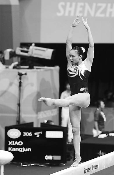 8月15日,中国选手肖康君夺得大运会女子体操个人全能冠军。图为她在平衡木比赛中。本报记者 杨姣摄