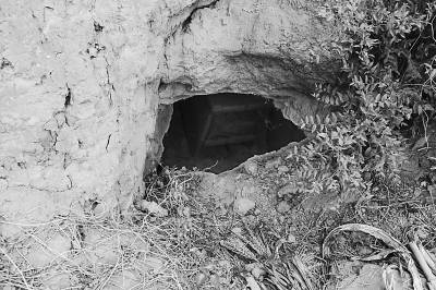 在平乐镇某村的一个大冢上,记者在当地人的指引下发现了三个盗洞。盗洞呈半圆形,足以容纳一人进出。有的盗洞口被零碎的酸枣枝遮挡,十分隐蔽,但有的则直接袒露着。