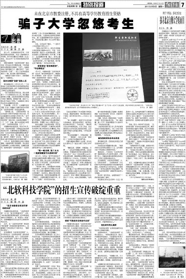 在调查此次“北软科技学院”涉嫌违规招生的过程中,笔者发现,“北软科技学院”一直被一所叫做“北京自修大学”的学校“附体”。